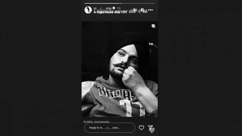 It has been two years since Sidhu Moosewala was murdered. While the fight for justice still continues, several friends and colleagues of the late Punjabi singer took to their social media handles to remember him and offer their tribute. Altaf Shaikh, aka MC Stan, also remembered Sidhu Moosewala on his second death anniversary. Taking to his Instagram handle, Stan shared a picture of Sidhu Moosewala and wrote, "Legends never die." Sidhu Moosewala Death Anniversary: Singer's Family to Organise 'Simple' Event, Requests Fans To Not Attend the Program Due to Ongoing Lok Sabha Elections.