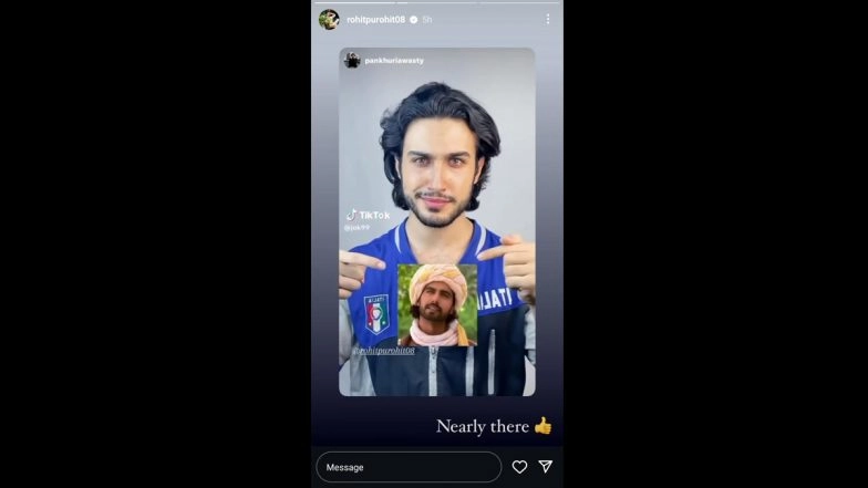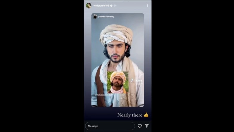 Star Plus' Yeh Rishta Kya Kehlata Hai is currently one of the most loved Indian TV shows. With Rohit Purohit (Armaan) and Samridhii Shukla (Abhira) leading the cast, the show has captured viewers' hearts with its amazing chemistry and exciting storyline, quickly building a huge fan base. Rohit Purohit, who is quite active on social media, often re-shares fan edits and other BTS pictures on his Instagram handle. On Saturday, the YRKKH actor re-shared one such video on his Insta stories, where a fan attempted to recreate one of his looks. The TikTok video shared by a fan page featured a person recreating what appeared to be a Persian-themed look of Rohit Purohit. The end result was impressive, as the fan naturally resembled the actor. Re-sharing the video, Rohit Purohit wrote, "Nearly there". ‘Yeh Rishta Kya Kehlata Hai’: Abhira and Armaan Deck Up in Desi Outfits in These BTS Photos From Sets!.