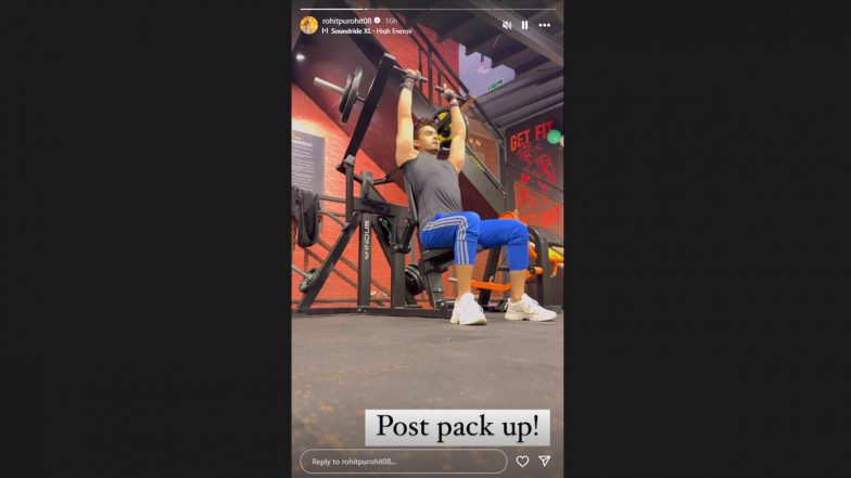 Yeh Rishta Kya Kehlata Hai (YRKKH) remains one of the most beloved TV shows in the country. The Star Plus show's leading stars, Rohit Purohit and Samridhii Shukla, have received widespread accolades for their performances as Armaan and Abhira. Rohit, who is quite active on social media, consistently updates his fans regarding his personal and professional life. The man not only lets his charm do all the work but also works out to stay in shape. Taking to his Instagram handle on Sunday, the YRKKH actor shared highlights from his latest 'post-pack-up' workout session. Rohit was seen going heavy on the shoulder press as he maintained a perfect mind-muscle connection. His next story featured a series of mirror selfies showcasing his toned physique. ‘Yeh Rishta Kya Kehlata Hai’: Rohit Purohit Aka Armaan Goes Shirtless To Flaunt His Ripped Body in Latest Post (See Pics).