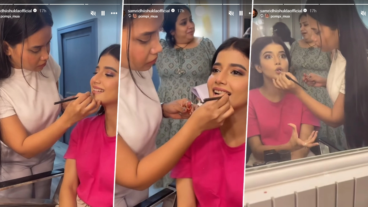Samridhii Shukla, who portrays the role of Abhira in Rajan Shahi’s popular series Yeh Rishta Kya Kehlata Hai, frequently shares behind-the-scenes moments from her work life on Instagram. Today, she treated her followers to a delightful glimpse of her latest shooting experience. In a charming video, Samridhii is seen sitting in a makeup chair, having lipstick applied to her lips, showcasing the glamorous transformation that comes with her role. Her infectious energy and enthusiasm shine through, reminding fans of the hard work and creativity involved in bringing characters to life on screen. As one of television’s beloved faces, Samridhii’s updates never fail to excite her audience, and this sneak peek into her makeup session is sure to leave fans eagerly awaiting more. 'Yeh Rishta Kya Kehlata Hai’: Romiit Raaj Opens Up About Replacing Shivam Khajuria in Star Plus’ Popular Show – Here’s What He Has To Say!