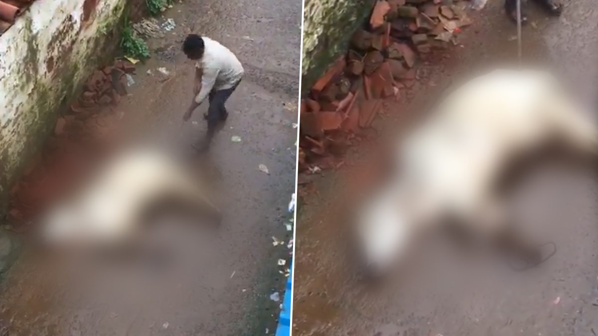 In a shocking incident, a man was arrested for brutally torturing a cow in the Mahgawan village of the Panagar police station area in Madhya Pradesh's Jabalpur. The horrific act, which involved inserting an iron rod into the cow’s mouth and private parts, led to the man's arrest after pictures went viral on social media. Reportedly, the incident occurred when the cow accidentally entered Mansharam Patel’s field. Enraged, Patel mercilessly beat the animal with the rod. The cow’s owner, Ajay Tiwari, filed a complaint at the Panagar police station. Authorities took swift action, registering a case against Patel under the Animal Cruelty Act and arresting him. Animal Cruelty in Madhya Pradesh: Man Throws Street Dog Into River in Ujjain District, FIR Registered.