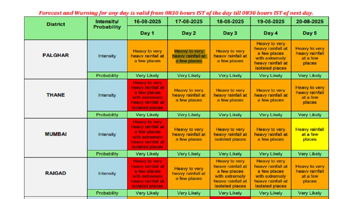 Check IMD's Weather Forecast for Mumbai and Other Districts Below