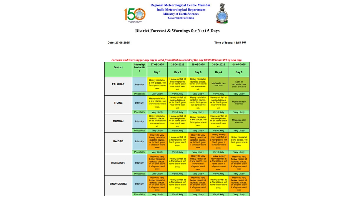 Mumbai Weather Forecast Till July 1