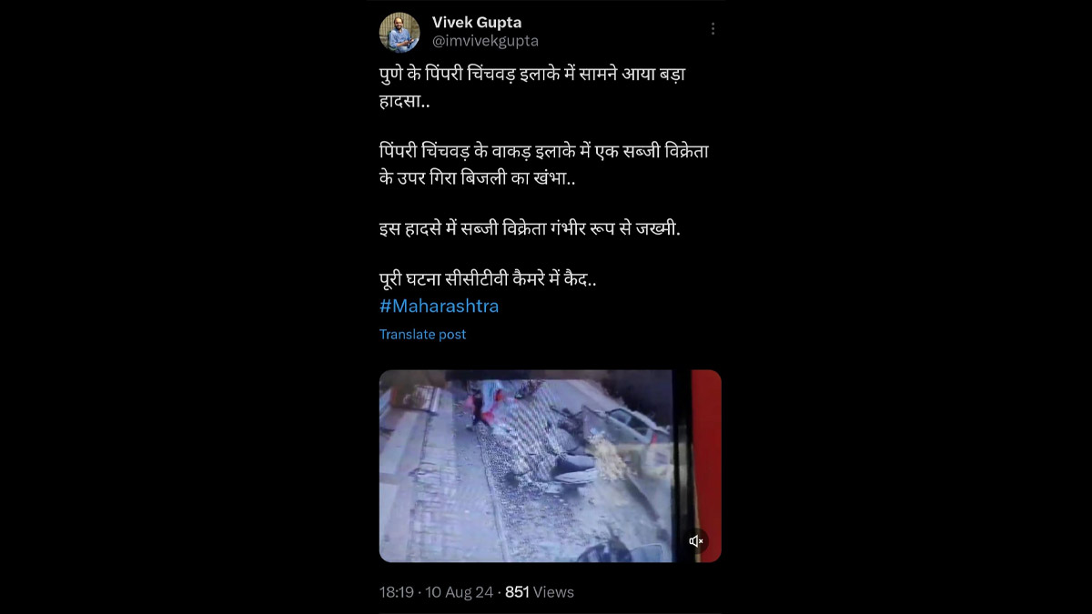 Vegetable Vendor Severely Injured After Electric Pole Falls on Him