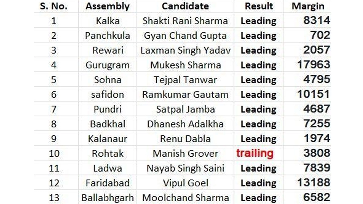 Assembly Seats Results of Haryana Where Dhami Campaigned