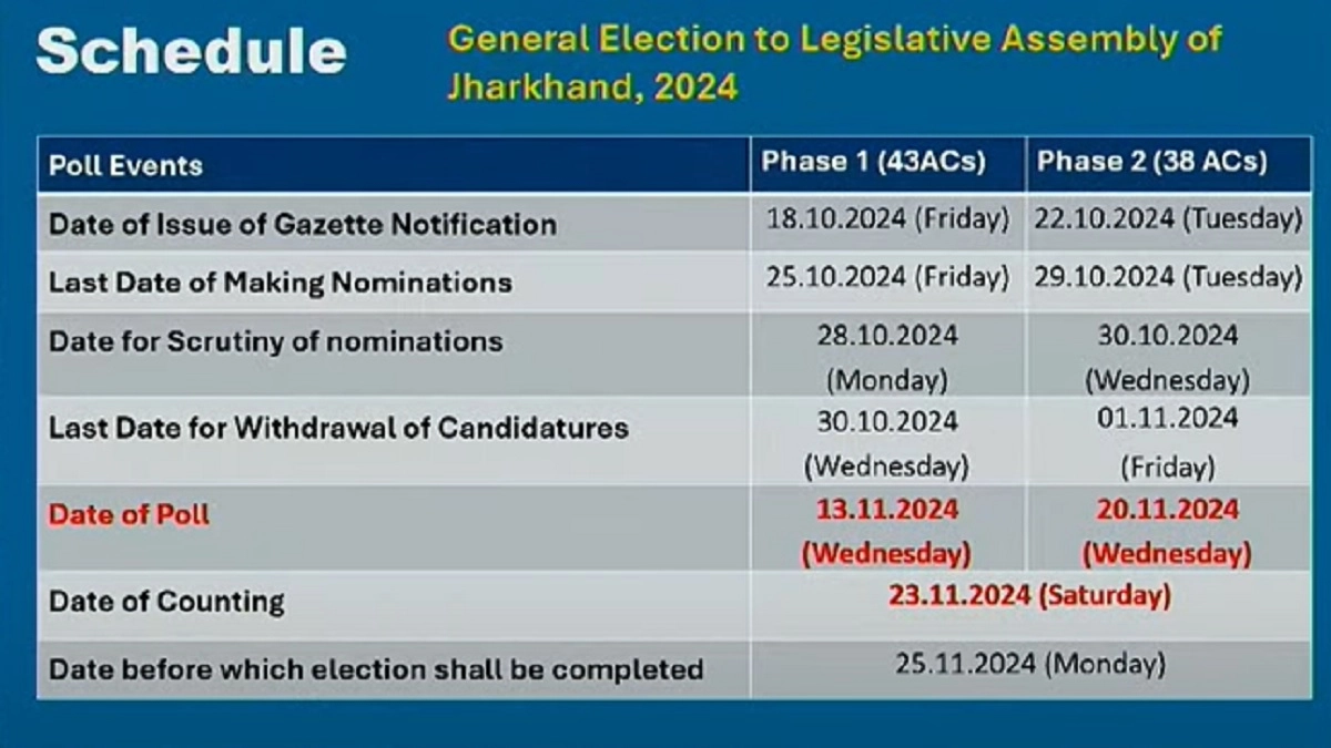 Jharkhand Election Date and Schedule 2024: