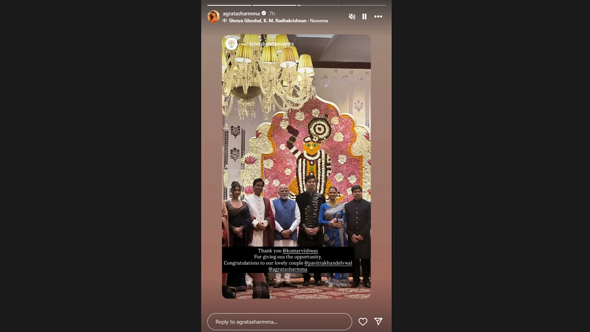 Former politician and renowned poet Kumar Vishvas hosted a grand wedding for his elder daughter, Agrata Sharma, who tied the knot with businessman Pavitra Khandelwal on March 2 in Udaipur, Rajasthan. The lavish ceremony at Leela Palace, overlooking Lake Pichola, saw an intimate yet extravagant three-day celebration with 200 guests. Following the nuptials, Kumar Vishvas hosted an extravagant reception that saw the attendance of several high-profile personalities, including Prime Minister Narendra Modi, Bollywood stars Yo Yo Honey Singh and B Praak, and political figures like Union Minister Chirag Paswan and Haryana CM Nayab Singh Saini. Video and Pictures from the event went viral on social media, showcasing the lavish affair. ‘Ghar Ka Naam Toh Ramayana Ho Par Apke Ghar Ki Shrilakshmi…’: Kumar Vishwas Takes Indirect Dig at Sonakshi Sinha and Zaheer Iqbal’s Marriage (Watch Viral Video).