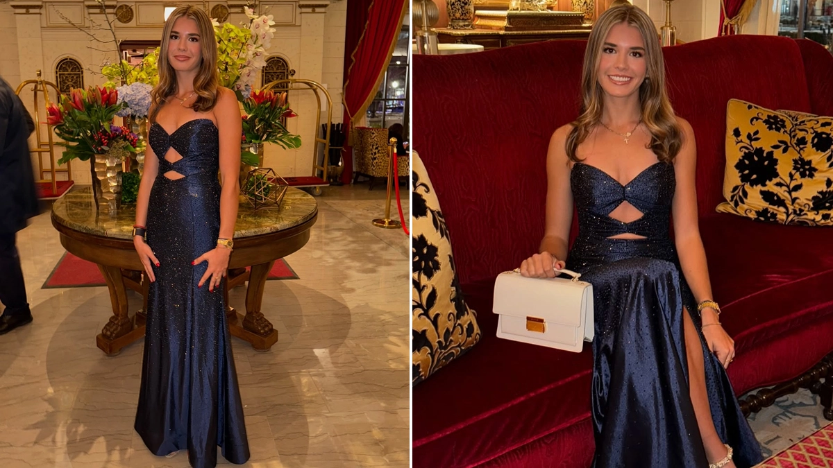Kai Madison Trump, daughter of Vanessa Trump and Donald Trump Jr, the eldest son of Donald Trump, stunned in two separate looks at Donald Trump’s inauguration. Kai absolutely slays in a strapless navy blue outfit featuring cutouts, beaded embellishments, a sweetheart neckline, a corseted bodice, a thigh-high slit, and a flowy skirt. She completes the look with chic heels, a watch, bracelets, a necklace, dainty earrings, and a white clutch bag. That’s not all! Kai effortlessly stole the spotlight in a shimmery champagne gold gown featuring breathtakingly gorgeous embroidery, a plunging neckline, a structured corset, and a front slit. She paired the look with strappy heels, a necklace with a heart pendant, bracelets, a watch, and dangling earrings. In both her looks, her hair and makeup game are on point, finishing each look with finesse. View Kai’s pictures and video below. Melania Trump Embraces American Fashion for the Inaugural Ceremony.