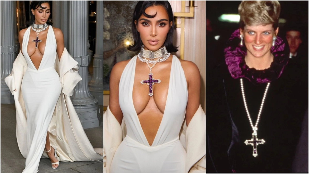 Kim Kardashian had her own princess moment at the LACMA Art+Film Gala in Los Angeles, rocking a vintage Attallah Cross Necklace, once worn by Princess Diana. But unlike the late British royal, who famously paired the iconic necklace with a Victorian-style velvet gown during a 1987 charity event, Kim took a risqué route. The reality TV star gave her own spin by wearing the necklace with a plunging white gown from Gucci. Kim K completed her look with a large pearl choker and short diamond necklaces. She posted the pictures from the LA film gala on her Instagram stories which soon went viral. Kim Kardashian Buys Princess Diana’s Iconic Cross Pendant for $197,000 at Sotheby’s Annual Auction.