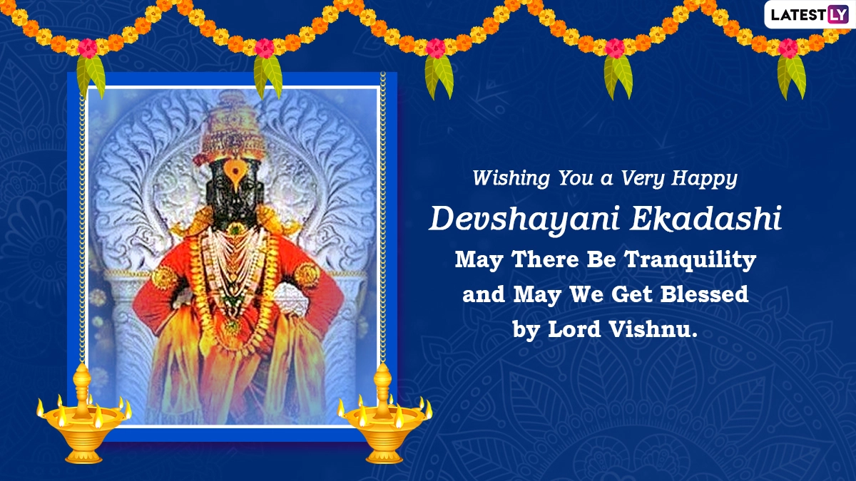 Ashadhi Ekadashi 2022 will be celebrated on July 10, Sunday, which will be the eleventh lunar day of Shukla Paksha of the Ashadha month. On this day, people worship Lord Vishnu and pray for strength and happiness in life. This day marks the beginning of Chaturmas, the holy period of four months when Lord Vishnu drives into the state of Yogic sleep. As you celebrate Devshayani Ekadashi, send these images, WhatsApp greetings, Facebook status, Telegram quotes, HD wallpapers & SMS to your friends and family. Download these Ashadhi Ekadashi 2022 Wishes for free!