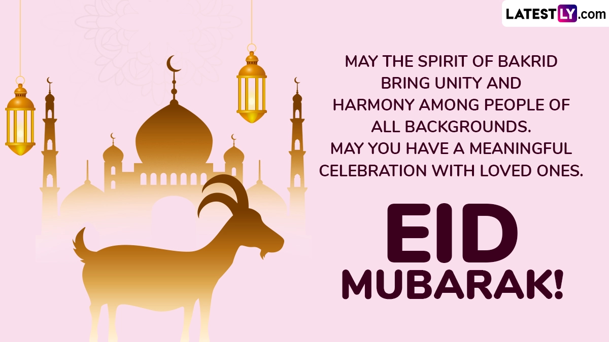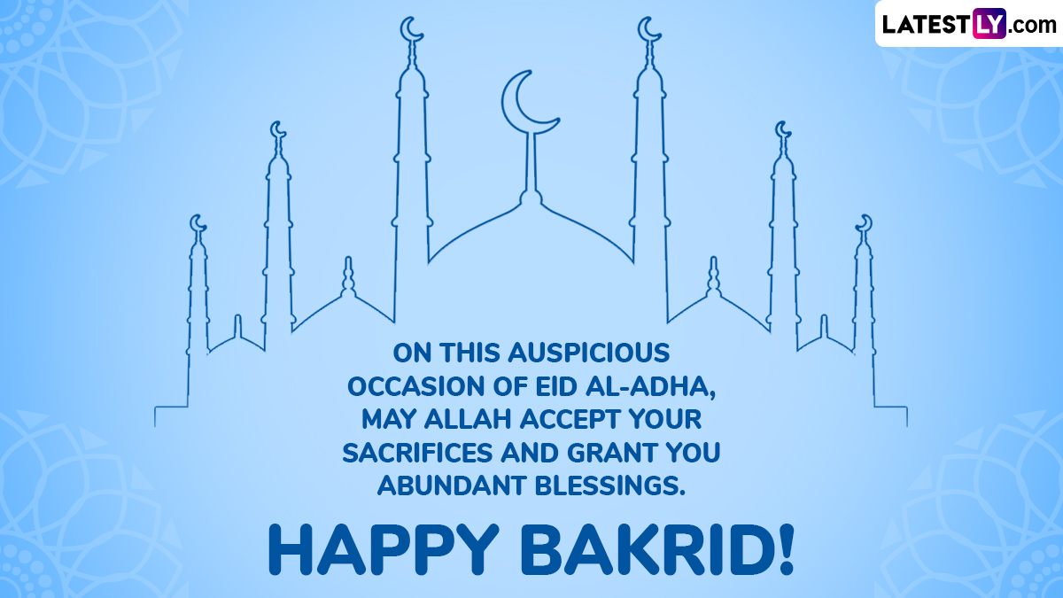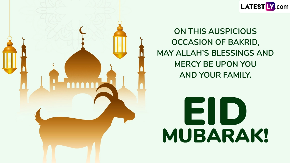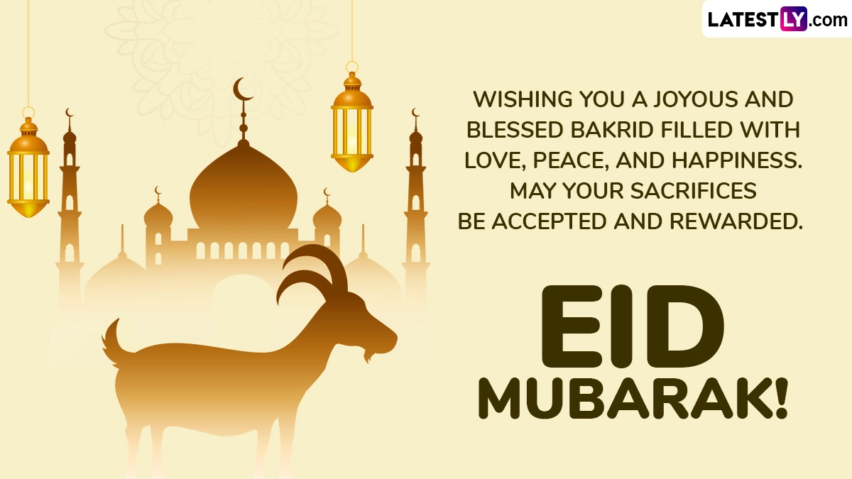 Eid Mubarak! Eid-ul-Adha or Eid al-Adha, also known as the Festival of Sacrifice or Bakrid or Bakra Eid, is the second most significant festival in the Islamic calendar, following Eid-al-Fitr. Bakrid 2025 in India is on June 7. The festival commemorates the Prophet Ibrahim’s devotion and belief in Allah by agreeing to sacrifice his son, Ishmael, who is replaced with a lamb as a divine act of mercy, symbolising sacrifice and surrender to God’s will. Sharing Bakrid Mubarak 2025 wishes and Happy Eid-ul-Adha greetings is a common ritual to make the festival even more memorable. Hence, we bring you Bakra Eid 2025 messages, Eid-al-Adha quotes, HD images, GIFs and wallpapers that you can share with your friends and family.