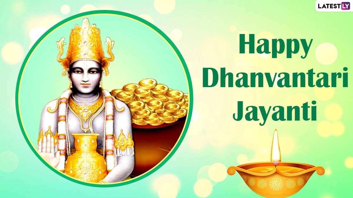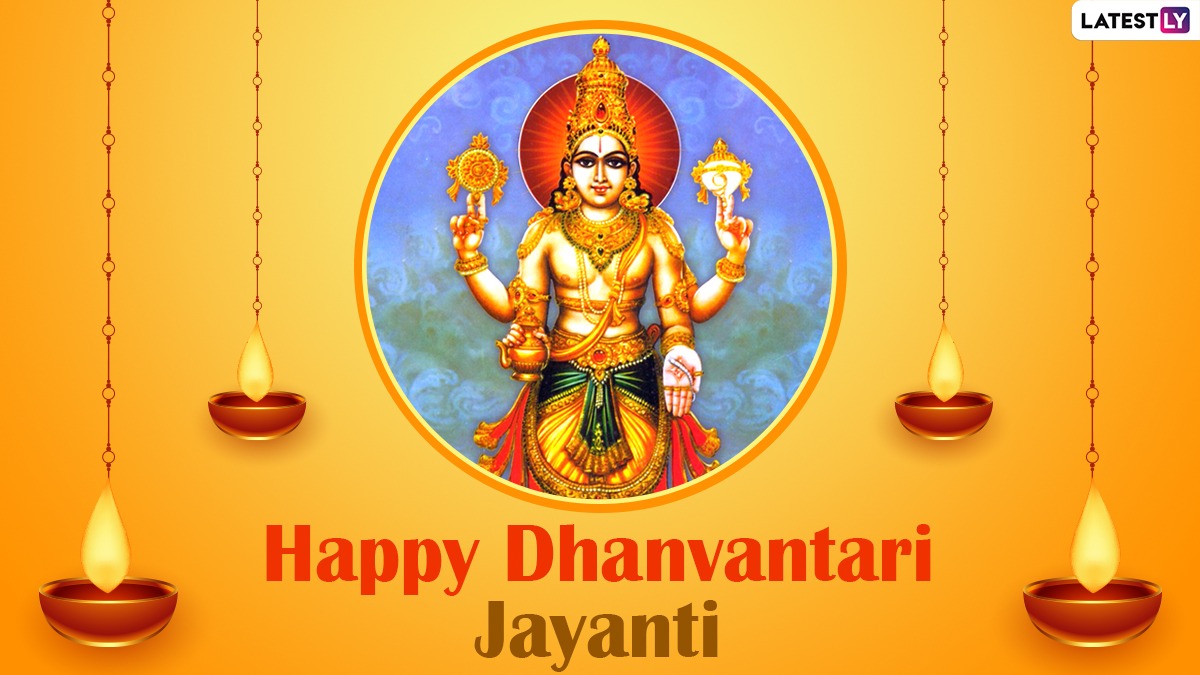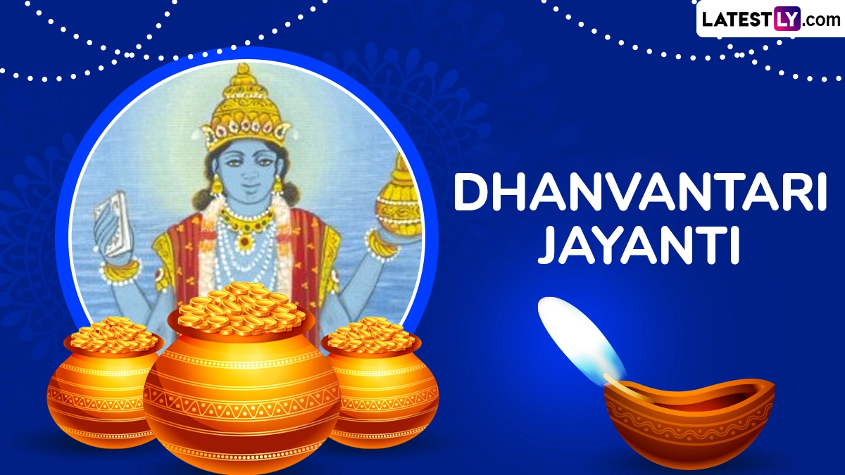 Dhanvantari Jayanti, also known as National Ayurveda Day, is observed to commemorate the festival of Dhanteras, marking the official beginning of Diwali. Dhanvantari Jayanti 2024 is on October 29. The observance is dedicated to Lord Dhanvantari, the god of Ayurveda, medicine and healing. The Dhanvantari Puja Pratahkala Muhurat starts from 06:37 AM to 08:55 AM on October 29. To celebrate the auspicious occasion, share these Dhanvantari Jayanti 2024 wishes, Happy Dhanteras HD images, National Ayurveda Day greetings, messages, quotes and wallpapers during Diwali 2024 week. National Ayurveda Day 2024 Date on Dhanteras Tithi in India: When Is Dhanvantari Jayanti? Know Significance of the Day Dedicated to Birth Anniversary of Lord Dhanvantari.