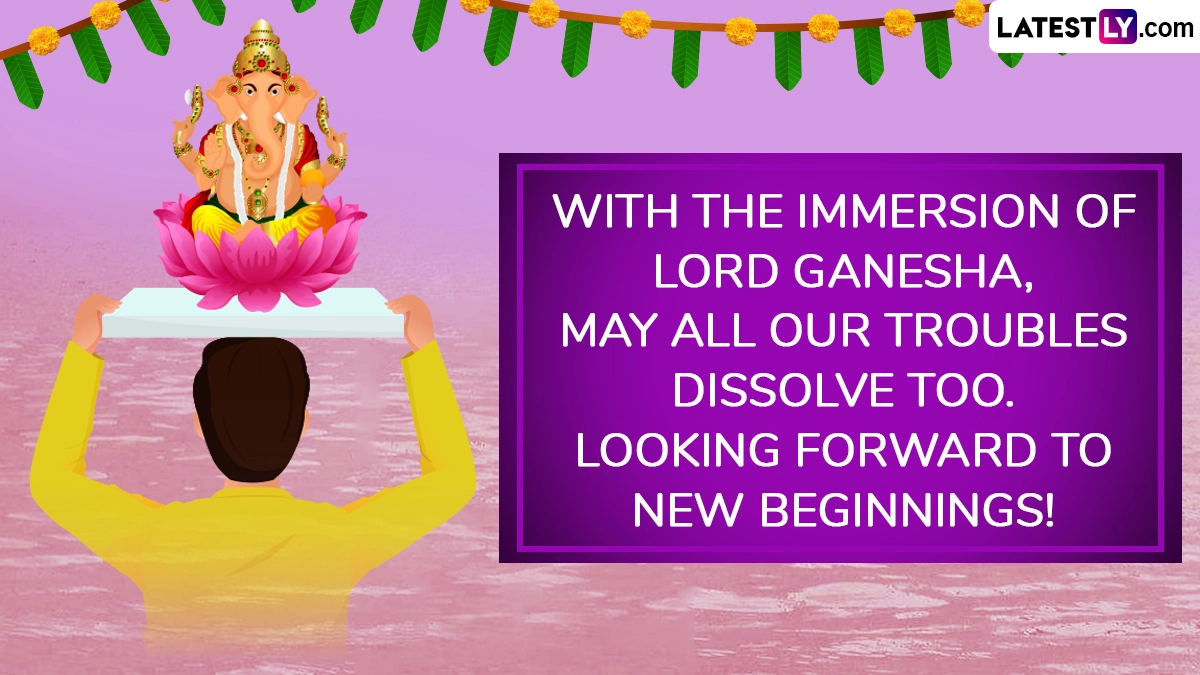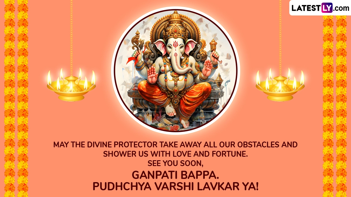 Ganesh Chaturthi is a major festival dedicated to the beloved and revered Lord Ganesha. The auspicious and significant Hindu festival celebrates his birth. Ganesh Chaturthi 2024 is from September 7—17. Devotees worship Lord Ganesha during this time. Part of the festival’s rituals and traditions is Ganesh Visarjan, the immersing of Lord Ganesha’s idol in a water body. Devotees perform Ganesha Puja and offer prayers. They then take the idol in a grand procession with bhajans, songs, singing, and dancing. Today, September 11, is the fifth day Visarjan. To celebrate, we have curated Ganesh Visarjan messages you can share with your friends and family. Download Ganesh Visarjan 2024 wishes, Ganpati Bappa Morya messages, Ganesh Visarjan 2024 messages, images, quotes, wallpapers and greetings for free. Ganesh Visarjan 2024 Wishes for Day 5: WhatsApp Messages, Ganpati Bappa Morya Images, Wallpapers, Greetings and Quotes To Send on Fifth Day of Ganesh Visarjan.