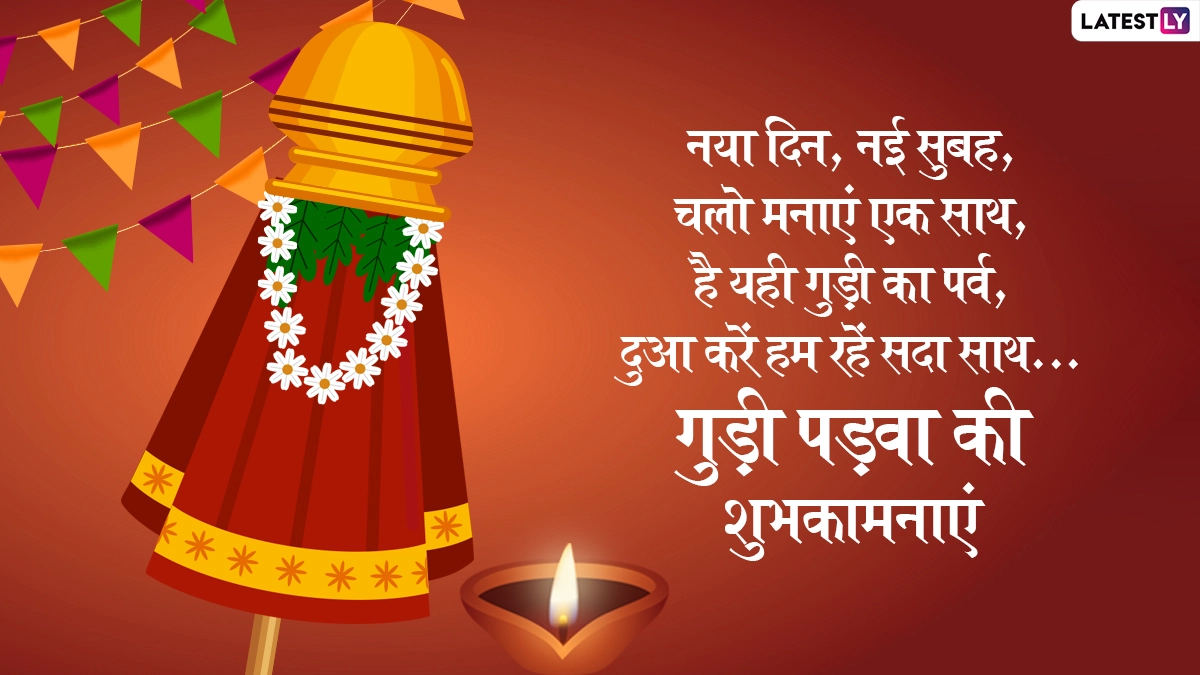 Gudi Padwa marks the beginning of a new year in the state of Maharashtra. The day is also celebrated as Marathi New Year. It falls in the Hindu month of Chaitra. This year, Gudi Padwa 2022 falls on April 2, Saturday. As one would expect, Maharashtrians observe the festival day with utmost joy and excitement. And the celebrations include exchanging lovely wishes and messages. This is why we bring you a collection of Gudi Padwa 2022 wishes in Hindi, Happy Gudi Padwa 2022 greetings, Gudi Padwa GIFs, Gudi Padwa banners, Happy Gudi Padwa SMS, Gudi Padwa messages for Facebook, Marathi New Year 2022 wishes, Marathi New Year 2022 images and HD wallpapers and a lot more to share with your family and friends.