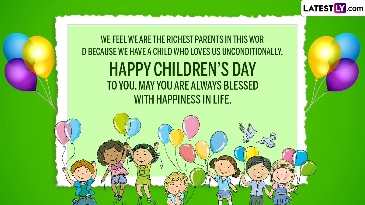 Message Reads: We Feel We Are the Richest Parents in This World Because We Have a Child Who Loves Us Unconditionally. Happy Children’s Day to You. May You Are Always Blessed With Happiness in Life.