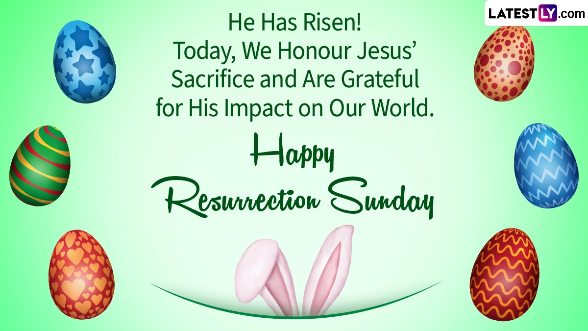 Every year, Christians honour Holy Week by reflecting on Jesus' final days on Earth. This solemn time leads to joyful Easter celebrations. This year, Easter 2024 falls on March 31. It's a special day, marking Jesus Christ's resurrection after his crucifixion on Good Friday. Easter Sunday symbolises life's triumph over death, ending the Lenten season of fasting and penitence. Easter is celebrated by gifting loved ones with Easter eggs. Many families gather with friends and family and enjoy a feast. ‘He is risen’ echoes everywhere, marking the joyous occasion. Share the joyful spirit of Easter by spreading Easter 2024 or Resurrection Sunday 2024 messages, greetings, wishes, quotes, wallpapers, and images on Facebook or WhatsApp. Easter 2024 Date: Know the History and Significance of the Important Christian Celebration Also Known As Resurrection Sunday.