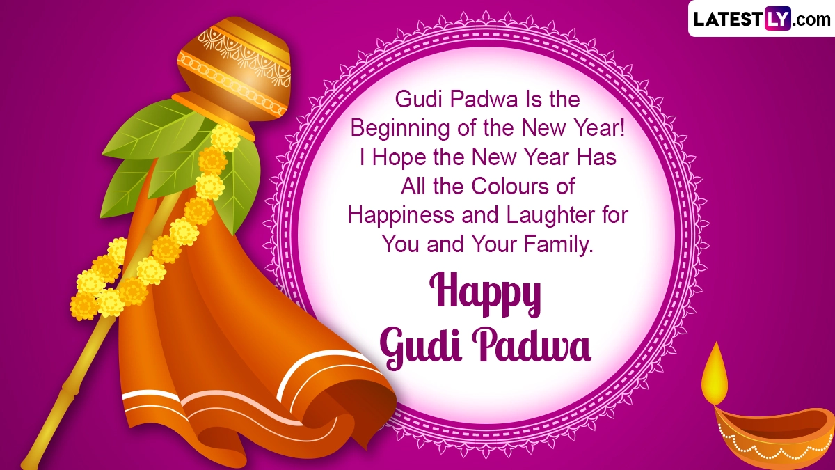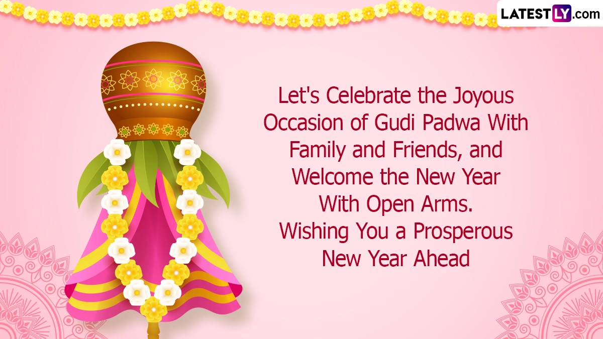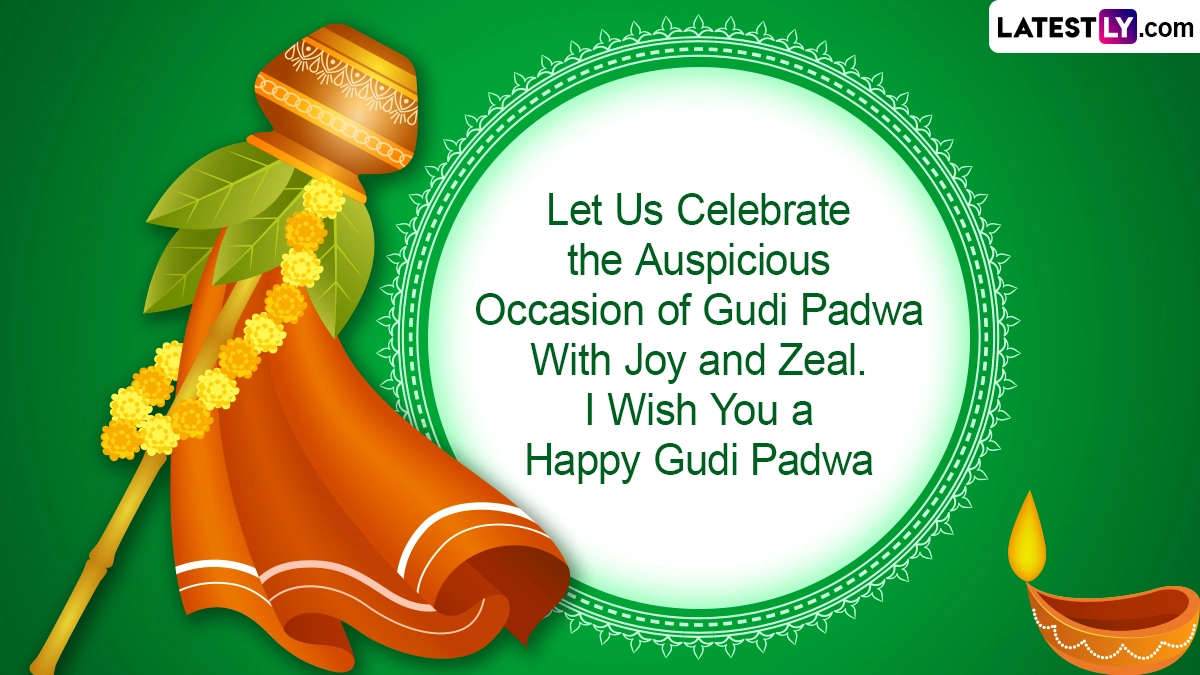 Gudi Padwa, also known as Samvatsar Padvo, is a joyful festival celebrated by the Maharashtrian and Konkani communities. This year, Gudi Padwa 2024 falls on April 9, a Tuesday. It marks the beginning of the Maharashtrian New Year, occurring on the first day of the Chaitra month (March/April) in the Hindu calendar. Mainly celebrated in Maharashtra and the Konkan region, Gudi Padwa aligns with the start of Chaitra Navratri. Legend has it that Lord Brahma created the universe on Gudi Padwa. The festival's name comes from 'Gudi,' which refers to Lord Brahma's emblem, and 'padwa,' which signifies the first day of the lunar phase. People celebrate by waking up early, wearing new clothes, decorating their homes, and raising the special flags called ‘gudhis’ on their doors. These flags represent prosperity and the victory of good over evil. To spread joy on Gudi Padwa, share Gudi Padwa 2024 wishes, greetings, images, wallpapers, quotes, and messages with your loved ones via WhatsApp or Facebook. Gudi Padwa 2024: How To Make Gudi at Home? Know the Significance of Gudi and Watch DIY Videos To Make Gudi for Marathi New Year.