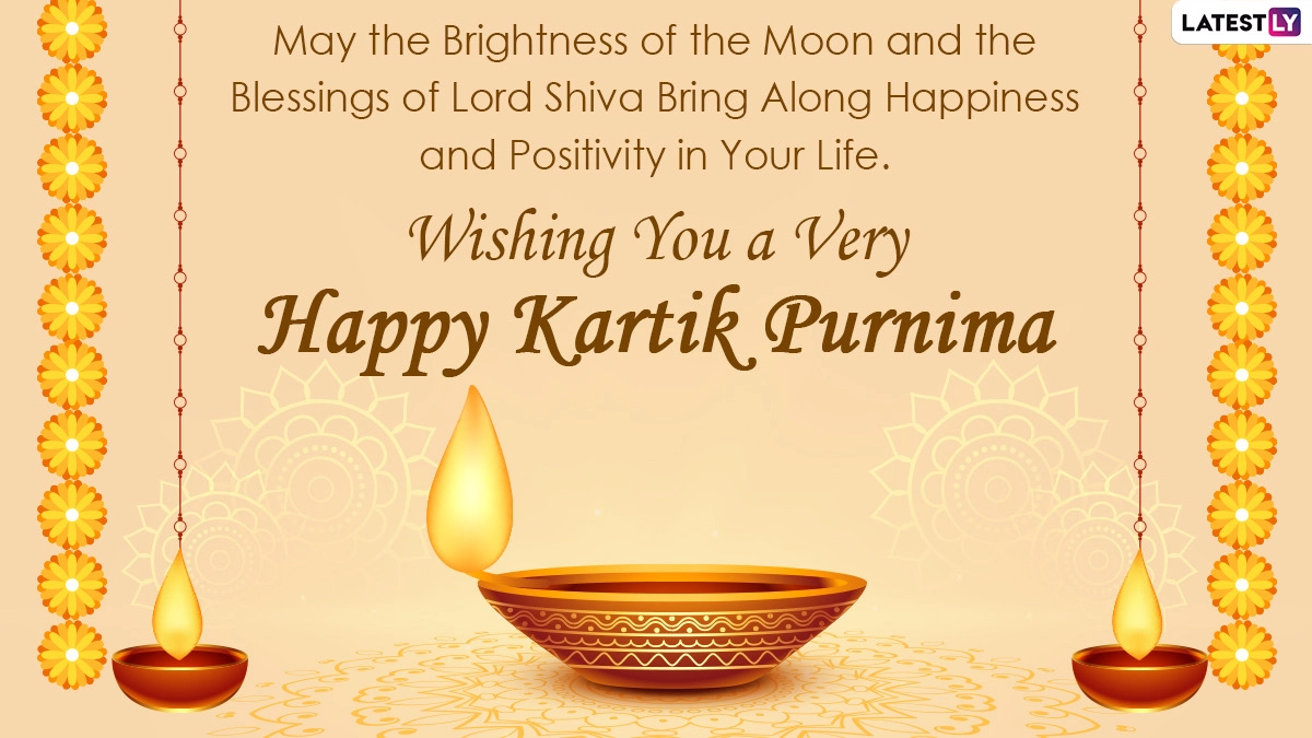 Kartik Purnima is considered to be one of the most auspicious and significant days in the Hindu calendar. The festival is observed from the Ekadashi tithi of Kartik Shukla Paksha to the Kartik Purnima tithi, spanning five days and culminating on the full moon night of Kartik. This celebration aligns with Kartik Purnima. This day marks the celebration of Lord Shiva's triumph over the demon Tripurasura. For this reason, Tripurotsav or Tripurari Purnima are other names for Utsav. We bring you wishes, greetings, messages, images and wallpapers that you can share with your loved ones on this auspicious occasion to celebrate Happy Kartik Purnima 2023. Kartik Purnima (Tripurari Purnima) 2023 Date in India: Know Customs, Tithi, Puja Vidhi, and Significance of Kartika Month's Full Moon Day.