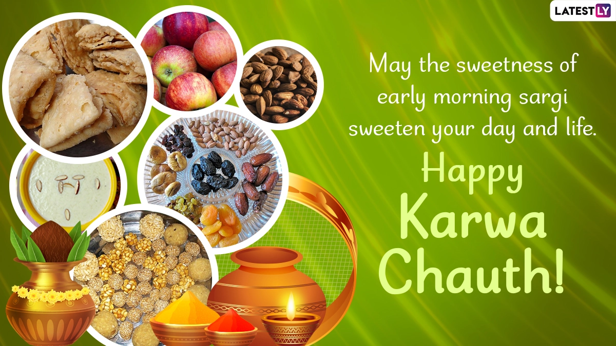 Karwa Chauth 2023 will be observed on Wednesday, November 1. It is a daylong fast observed by women for the long life of their husbands. Sargi is a cherished and integral part of the Karva Chauth tradition. Sargi is a tradition that fosters a sense of unity and support among women who gather in the early morning hours to share this meal. This pre-dawn meal holds immense cultural and emotional significance as it symbolizes the love, blessings, and support of a mother-in-law for her daughter-in-law. Here are Happy Sargi 2023 wishes and greetings for Karwa Chauth 2023. Happy Sargi 2023 Wishes For Karwa Chauth: Greetings, WhatsApp Messages, Images, HD Wallpapers and SMS To Share on Karva Chauth Vrat.