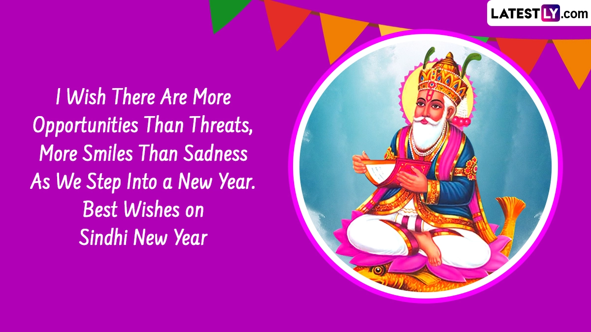 The Sindhi New Year, also known as Cheti Chand, is a jubilant festival welcoming the arrival of spring. This year, Sindhi New Year 2024 will be celebrated on April 9, a Tuesday. This day holds a dual significance as it also commemorates Jhulelal Jayanti, honouring the birth of the revered saint. According to legend, Jhulelal, believed to be an incarnation of Lord Varuna, rescued the Sindhi community from persecution by the cruel ruler Mirkhshah after their prayers to Lord Varuna for protection. Traditionally falling on the second day of Chaitra Shukla Paksha, the Sindhi New Year's date may vary depending on local calendars and moon sightings. On this auspicious occasion, Sindhis come together with their families for lively celebrations, indulging in feasts and colourful processions carrying Jhulelal's idol. To join in the festivities and spread joy, share Sindhi New Year 2024 images, quotes, wallpapers, wishes, greetings, and messages with your loved ones and Sindhi friends. Cheti Chand 2024 Date in India: When Is Jhulelal Jayanti 2024? Know Timings, Rituals, Celebrations and Significance of the Day Observed As Sindhi New Year.