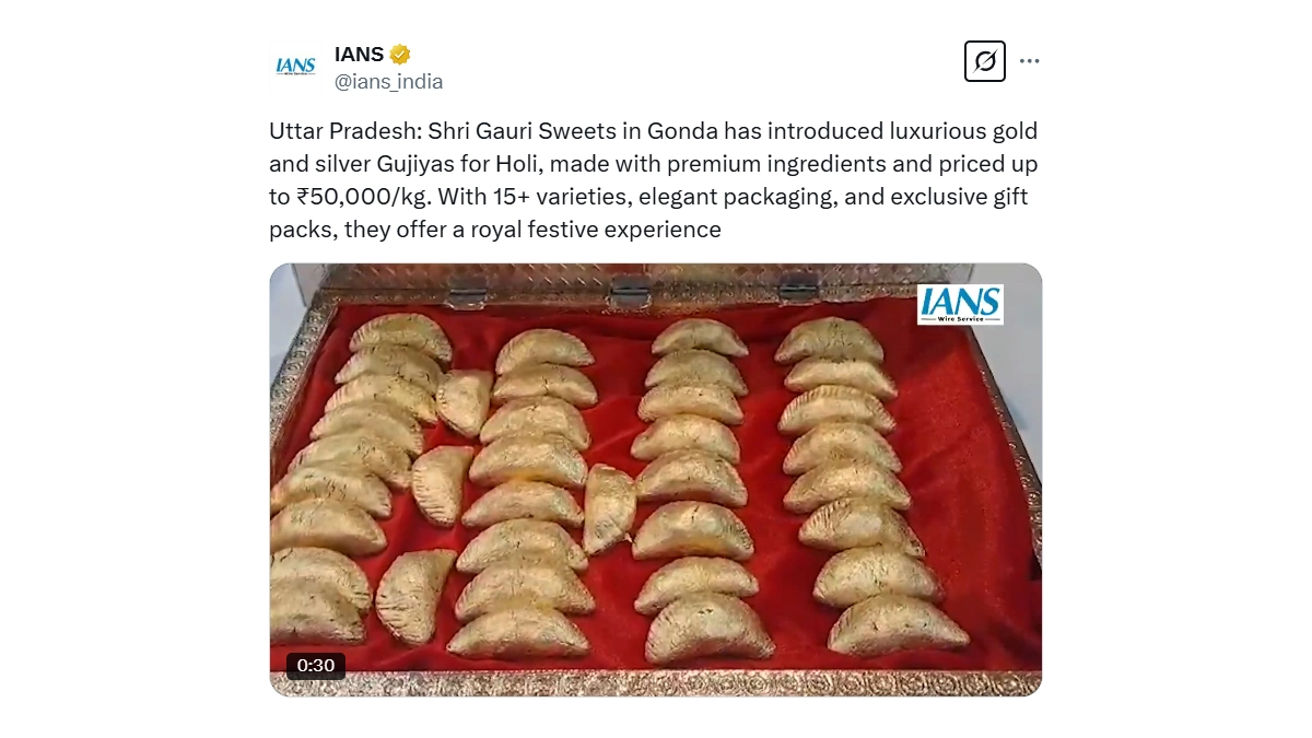 Uttar Pradesh: Shri Gauri Sweets in Gonda has introduced luxurious gold and silver Gujiyas for Holi, made with premium ingredients and priced up to ₹50,000/kg. With 15+ varieties, elegant packaging, and exclusive gift packs, they offer a royal festive experience pic.twitter.com/1xqjptyLuT