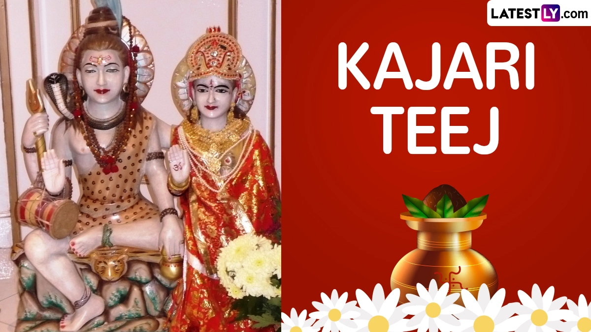 Kajari Teej is an auspicious and significant Hindu festival observed every year in India. This year, we observe Kajari Teej on Thursday, August 22, 2024. The festival is observed with a lot of joy and enthusiasm. Kajari Teej is a fast mainly observed by married women for blessings over their married life and for the long life of their husband. Unmarried women seeking a husband also observe the fast. The festival is dedicated to Lord Shiva and Goddess Parvati. Many even observe a nirjala fast, which is fasting without water. Devotees visit the temples on this day and worship Lord Shiva and Goddess Parvati for divine blessings. The festival is also known as Kajali Teej or Boorhi Teej. As part of the celebrations, women also apply henna and wear new clothes and ornaments. To observe the festival, share Kajari Teej 2024 greetings, wishes, messages images, quotes and wallpapers. Happy Kajari Teej 2024 Greetings in Hindi: WhatsApp Status, Facebook Messages, Photos, SMS, HD Wallpapers and Quotes To Share on Badi Teej.