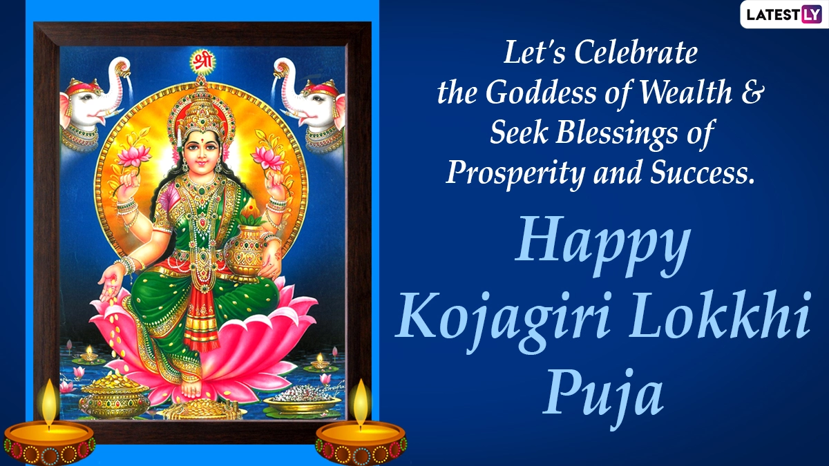 Kojagari Lakshmi Puja is a revered and major Hindu festival. It is mainly celebrated in the states of West Bengal and Odisha. Kojagari Lakshmi Puja 2024 falls on October 16. The festival is dedicated to Goddess Lakshmi, the deity of prosperity, wealth, abundance and good fortune. Worshipping Goddess Lakshmi during this time is considered auspicious. Many devotees visit temples, observe a strict fast, offer their prayers and seek the blessings of the divine. Visiting family, friends and relatives is a common way of celebrating. To begin the celebrations, share heartfelt messages for the occasion. We have curated a list of Kojagari Lakshmi Puja 2024 wishes, Happy Kojagari Lakshmi Puja greetings, Subho Lokkhi Pujo messages, Goddess Lakshmi images, Kojagari Lakshmi Puja wallpapers, and quotes. Kojagari Lakshmi Puja 2024 Date and Timings on Sharad Purnima: Kojagara Puja Time, Purnima Tithi, Rituals and Significance To Celebrate Lokkhi Pujo.