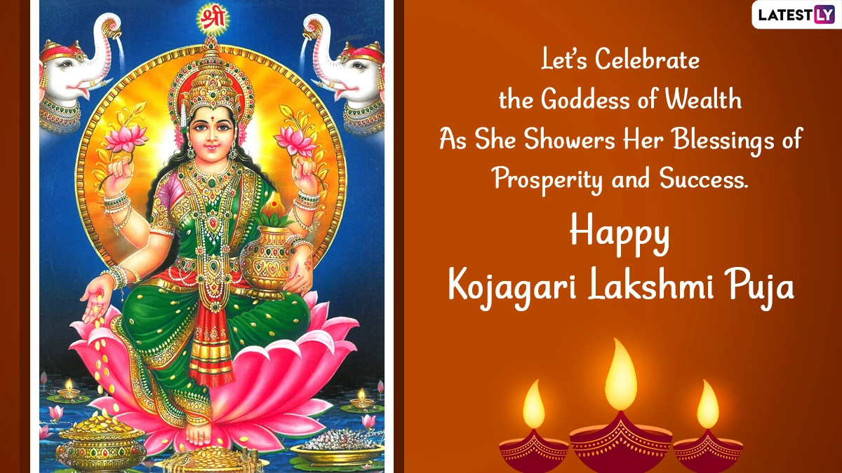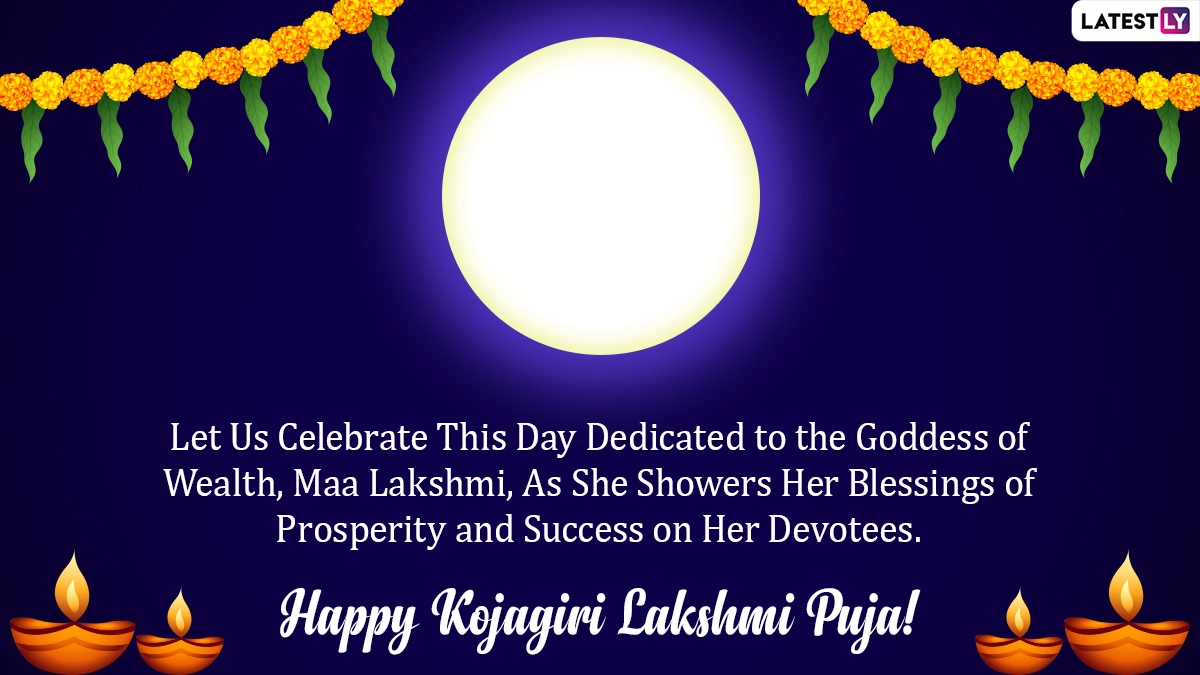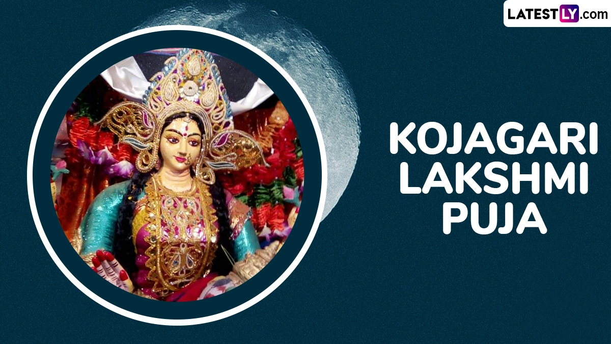 Kojagari Lakshmi Puja, also called Sharad Purnima, Kojagari Lokkhi Pujo or Kojagari Lokkhi Puja, is a significant and auspicious festival. The festival is celebrated with joy, faith, enthusiasm and devotion. It is mainly celebrated in the states of West Bengal and Odisha. Kojagari Lakshmi Puja 2024 falls on Wednesday, October 16. The festival is celebrated after the five-day Durga Puja. Kojagari Lakshmi Puja is dedicated to Goddess Lakshmi. Devotees welcome her into their homes during this time and conduct various rituals and customs. Devotees also observe a strict fast, visit temples to worship Goddess Lakshmi, chant mantras, offer their prayers and seek blessings from the Goddess. Celebrate by sharing Kojagari Lakshmi Puja 2024 messages, Happy Kojagari Lakshmi Puja wishes, Kojagari Lakshmi Puja greetings, Subho Lokkhi Pujo quotes, and Goddess Lakshmi images and wallpapers. Kojagari Lakshmi Puja 2024 Date and Timings on Sharad Purnima: Kojagara Puja Time, Purnima Tithi, Rituals and Significance To Celebrate Lokkhi Pujo.