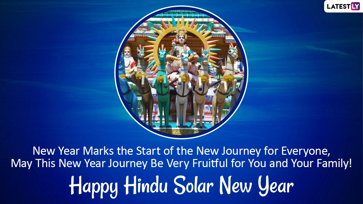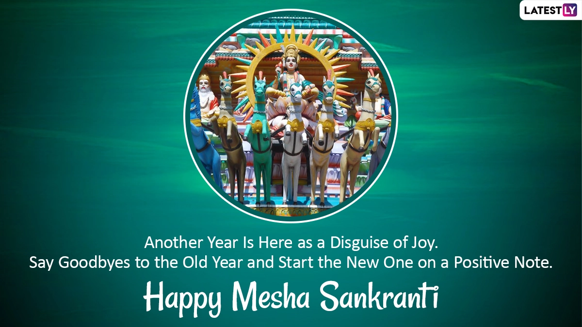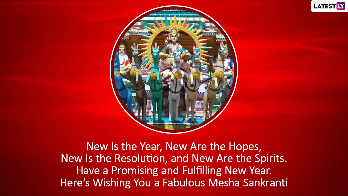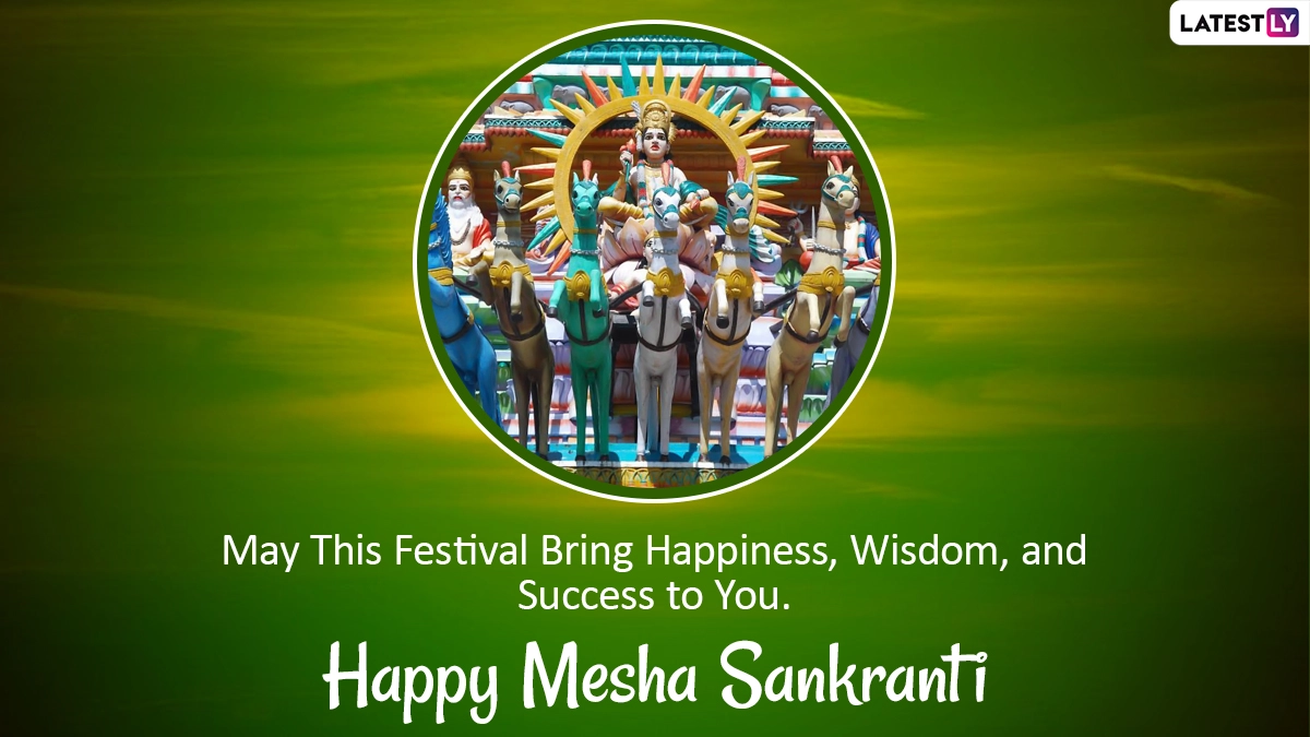 Mesha Sankranti, also known as the Solar New Year or Maha Vishuva Sankranti, is a special day in Vedic astrology. It marks the Sun's entry into Mesha Rashi, or the Aries zodiac sign. This year, Mesha Sankranti 2024 will be observed on April 13, a Saturday. This auspicious occasion signifies the beginning of the Hindu solar year, a time to embrace fresh beginnings and welcome the new year's energy! Many celebrate Mesha Sankranti by wearing new clothes, preparing special meals, and offering prayers for good fortune in the year ahead. Mesha Sankranti is a joyous occasion to connect with loved ones and set intentions for a prosperous new year. Join in the festivities by sending your family and friends Mesha Sankranti 2024 wishes, greetings, quotes, wallpapers and images. When Is Mesha Sankranti 2024? Know the Solar New Year Date, Shubh Muhurat, Timings and Significance Related to the Auspicious Hindu Day.