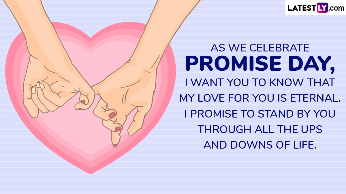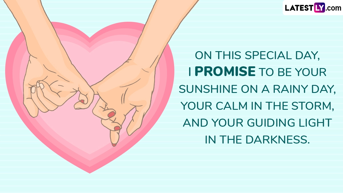 Promise Day is a very exciting and fun-filled celebration that is part of the romantic Valentine Week. Promise Day is usually celebrated on February 11. Promise Day 2025 falls on Tuesday, February 11. Promise Day is a special day when couples and lovers make meaningful promises to one another. Not just couples, even close friends and family members use this day to express their love and affection for each other. Loved ones promise to stay loyal and committed, to be by each other’s side, and to support one another. While some share heartfelt notes, others say their promises in person. If you are looking for a way to kick off the celebrations, start with heartwarming messages. To help, we have curated a list of Promise Day 2025 wishes, greetings, quotes, images, wallpapers, and messages. You can easily download them for free and share them via Facebook or WhatsApp. Promise Day 2025 Date, History and Significance: A Pledge of Love and Loyalty, Here's Everything To Know About the Fifth Day of Valentine Week.