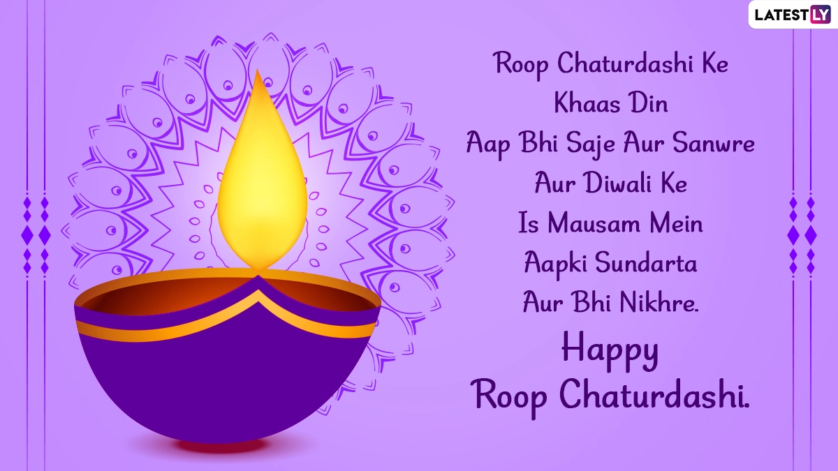 Roop Chaudas or Roop Chaturdashi is celebrated with utmost joy and fervour during Diwali week. It is celebrated a day before the Badi Diwali or main Diwali when Lakshmi Pujan is performed. Roop Chaudas is a celebration of the beauty of a woman. To mark this beautiful celebration of Roop Chaudas 2021, here’s a collection of Happy Roop Chaudas 2021 wishes, Happy Roop Chaturdashi 2021 greetings, Roop Chaudas images, Roop Chaturdashi HD wallpapers, Roop Chaudas 2021 messages, Roop Chaturdashi quotes, WhatsApp status, and a lot more to celebrate it with your family and friends. Happy Choti Diwali 2021 Messages & Naraka Chaturdashi Greetings: WhatsApp Status, HD Wallpapers, Wishes, Quotes and SMS To Send for Chhoti Diwali.