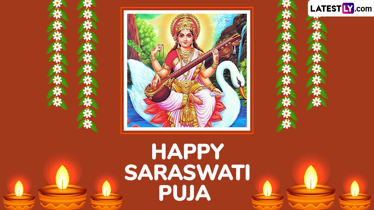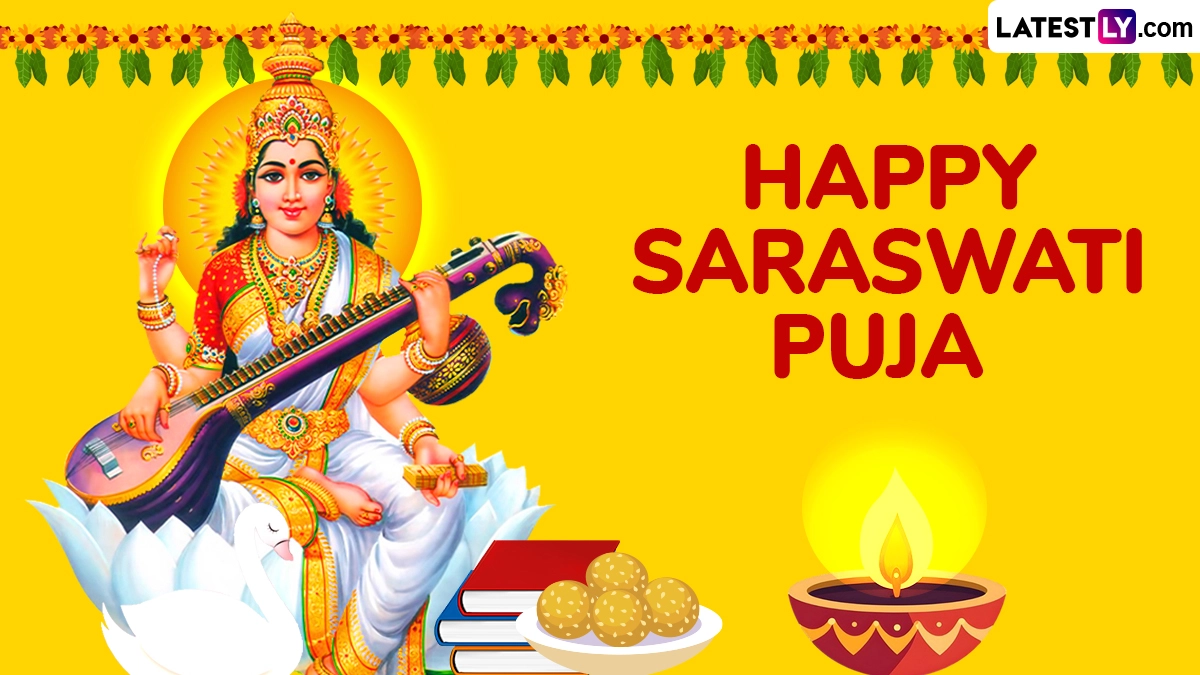 The auspicious festival of Saraswati Puja 2025 is here. It is also known as Shri Panchami or Saraswati PanchamiтАФa day of devotion and celebration across India. The most auspicious time to perform Saraswati Puja on Basant Panchami is during the Panchami tithi, which prevails from 07:09 AM to 12:35 PM on February 2. Honouring Goddess Saraswati, people seek her blessings to excel in academics, arts and intellectual pursuits. Below, we bring you Saraswati Puja 2025 images and HD wallpapers that you can download for free online to share on Basant Panchami, also known as Vasant Panchami. These Basant Panchami 2025 greetings, Happy Saraswati Puja 2025 wishes and messages are perfect to send to your near ones as you spread the festive joy.