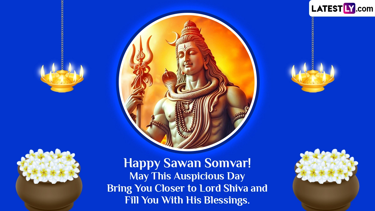 Sawan is an auspicious month and it is also the holiest month according to the Hindu calendar. The month is observed by several rituals, customs and fasts which are kept to worship Lord Shiva, who is associated with Mondays. This year, we observe the fourth Sawan Somwar on August 12, 2024. In Maharashtra, the second Sawan Somwar will be observed on August 12. The month not only marks the onset of the rains in India but it also commemorates the divine union of Lord Shiva and Goddess Parvati. Their marriage is celebrated during this time. Devotees observe the month with a lot of faith and devotion. It is believed that worshipping Lord Shiva and Goddess Parvati during this time helps one get rid of suffering and lead a prosperous and happy life. To celebrate, share Sawan Somwar 2024 images, wishes, wallpapers, quotes, greetings and messages. Sawan Somwar 2024 Vrat Foods To Eat: Sabudana, Seasonal Fruits, Makhana and More, Food Items You Can Consume During the Shravan Monday Fasts.