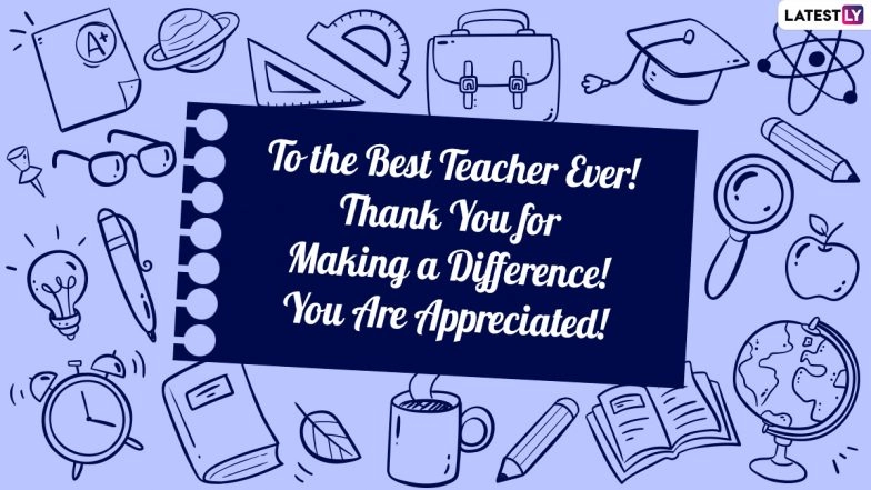 Teacher Appreciation Week is celebrated every year in the US. In 2024, the US will be celebrating Teacher Appreciation Week 2024 from May 6 to May 12, with Teacher Appreciation Day 2024 falling on May 7. It's also known as National Teacher Day in the US. Teachers are invaluable treasures to students, parents, and the community as a whole. Take a moment to thank them for their excellence and for the knowledge they impart every day. Teachers truly deserve our gratitude. Thank-you messages for teachers should be shared widely, be it in person, through an appreciation card, through direct messaging, or through social media platforms like Instagram, WhatsApp, Facebook, or TikTok. To honour and celebrate your teacher, send them heartfelt wishes, greetings, messages, images, quotes, and wallpapers for Teacher Appreciation Day or Teacher Appreciation Week in 2024.ย Teacher Appreciation Week 2024 in US: What Is Teacher Appreciation Day Date? Know the History and Significance Behind This Celebration.