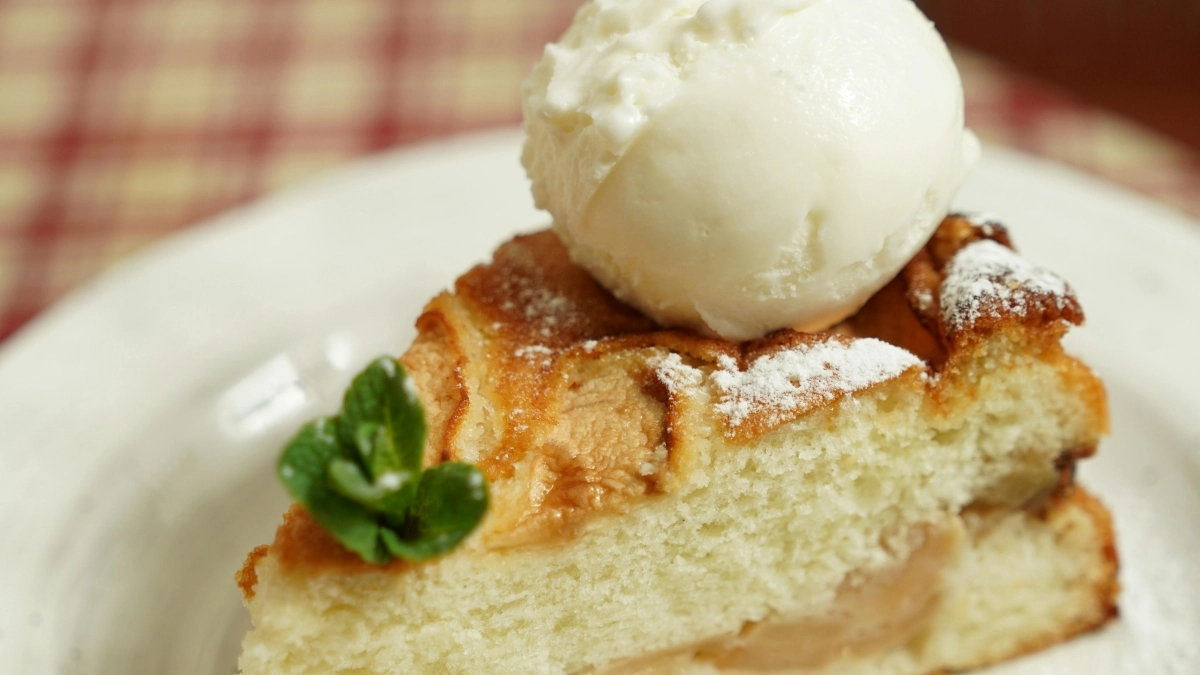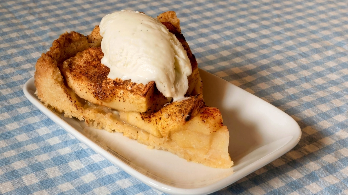 Apple Cake With Vanilla Ice Cream For National Ice Cream Pie Day