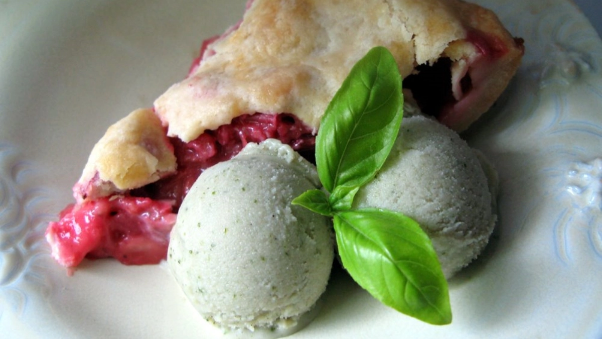 Pie With Basil and Ice Cream For National Ice Cream Pie Day