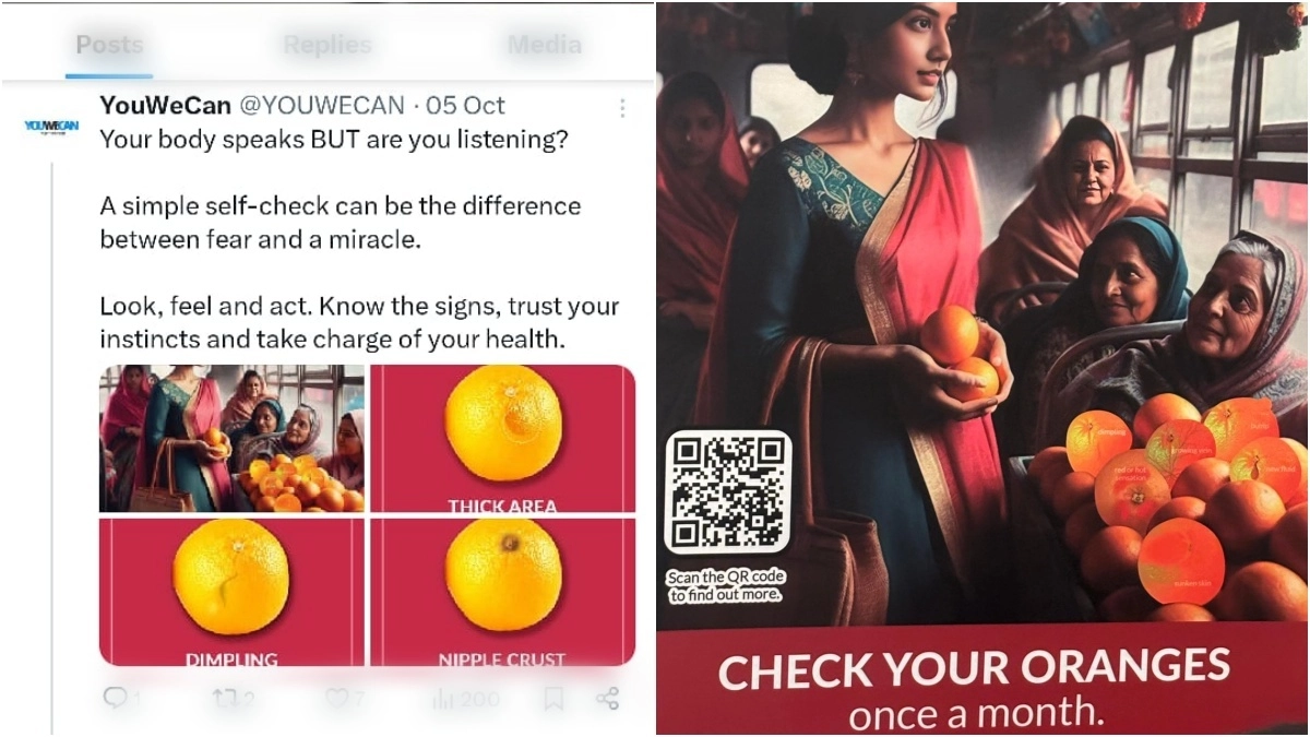 How will a country raise Breast Cancer Awareness is we can’t even call breasts what they are. Saw this at Delhi Metro and like what the hell? Check your oranges? Who makes these campaigns, who approves them? Are we governed by such dumb people that they let this poster become… pic.twitter.com/YAZ5WYSxXf