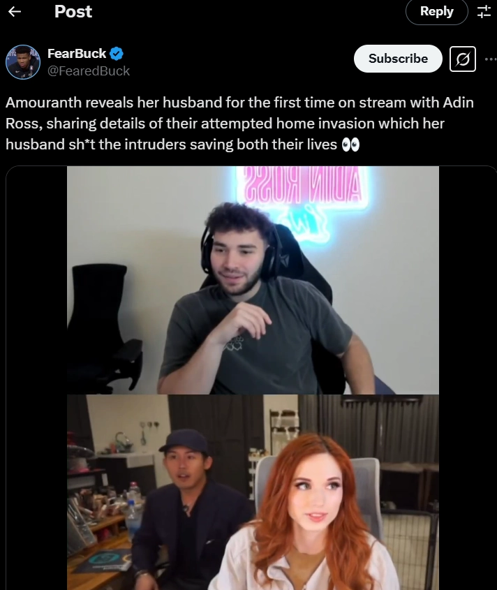 Popular Twitch streamer and content creator Amouranth opened up about the traumatic experience of a home invasion during a live stream with Adin Ross. Amouranth spoke about the terrifying feeling of having her privacy violated and the emotional toll that such an event can take. The live-streamed discussion was not only a raw moment for the streamers but also highlighted the importance of safety and security in the digital age, where public figures are increasingly vulnerable to both online and offline threats. Amouranth also introduced her husband for the first time to her audience during the livestream. The live discussion was not only a reflection on the traumatic event but also an important conversation about the dangers that many public figures face due to their visibility on social media and streaming platforms.Ā Amouranth Bitcoin Robbery at Gunpoint: Twitch Streamer and OnlyFans Model Kaitlyn āAmouranthā Siragusa Hospitalised After Harrowing Home Invasion by Armed Intruders Over Crypto Fortune (Watch Video).