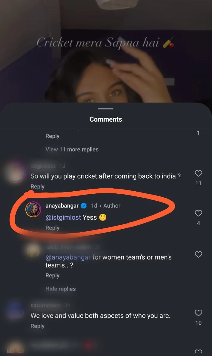 Former Indian cricketer Sanjay Bangar’s child, Anaya Bangar, earlier shared her journey of hormonal replacement therapy. The young athlete followed their father’s footsteps and his love for the gentlemen’s sport and revealed their interest in returning to cricket. In their latest Instagram reel, with the caption, "Cricket mera sapna hai, aur transition meri sachai," (Cricket is my dream and transition is my truth). Anaya emphasised the hormone replacement therapy and further confirmed their return to playing cricket once they are back in India. An Instagram user commented on the reel, asking, “so will you play cricket after returning to India?” to which Anaya responded, “yes.” Sanjay Bangar’s Child Anaya Shares Transformation Journey in Inspirational Post.