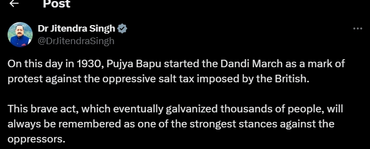 The Dandi March, also known as the Salt March holds an unparalleled place in the annals of India’s independence movement, symbolising a nation’s collective fight against colonial oppression through peaceful resistance. On March 12, 1930, Gandhi and his followers began a historic 24-day, 390-kilometre march from Sabarmati Ashram to the coastal village of Dandi in Gujarat, challenging the British salt tax by producing salt from the sea. The Dandi March with its symbolic significance and far-reaching impact, united Indians from diverse backgrounds and sowed the seeds of a nonviolent revolution that would ultimately lead to India’s independence. The Dandi March reverberated far beyond India’s borders, becoming an iconic moment in the history of resistance against colonial powers. Here’s how the country is paying tribute to the historic movement that was a part of Indian independence on Dandi March Anniversary 2025. Dandi March Anniversary 2025: PM Narendra Modi Pays Tribute to Freedom Fighters, Says ‘Mahatma Gandhi-Led March a Defining Chapter in India’s Freedom Struggle’.