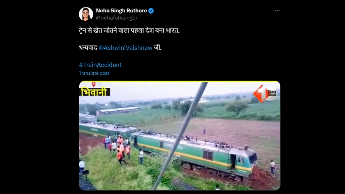Pictures shared by users on X (formerly Twitter) show a train allegedly entering a field. Users who shared the pictures claimed that the train entered the field in Haryana's Bhiwani. While a few other users said that the train accident occurred in the Maharashtra's Solapur. However, the news is not true. The picture is of an old incident which occurred in 2022. PIB Fact Check Team also debunked the fake news and said that the video being shared in the post is two years old. Meanwhile, Solapur DRM said that the picture is of an incident of 2022. "Please do not post such misleading posts. Do not demoralize the 12 lakh employees of Indian Railways by doing this," their tweet read.