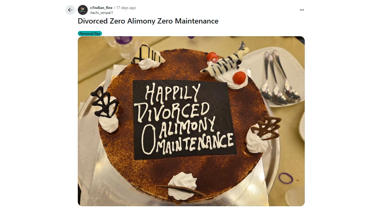 A Reddit post going viral claims that a man successfully got a divorce on his own terms without hiring an advocate. The post also claimed that the man fought multiple legal cases filed by his wife, including criminal and family cases and got divorced with zero alimony and zero maintenance. As per the Reddit post, the man appeared in court himself, known as acting as a Party-in-Person. The Reddit user "itachi_senpai1" said that his friend got both Domestic Violence cases and CrPC 125 125 dismissed without getting any maintenance order. "Rejected all drafts of MoU from wife's side and drafted his own MoU and MCD Petition and got divorced on his own terms and conditions," the post read. The Reddit user also said that after the divorce, his friend threw a grand party for all his friends and coworkers. "Personal Flex of knowing such a guy who fought against a biased system and came out a winner," the post added. Assam: Man Bathes in 40 Litres of Milk To Celebrate Divorce From Wife Who Allegedly Eloped Twice in Nalbari, Video Goes Viral.