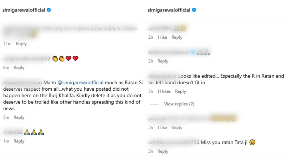 Simi Garewal Shares Unverified Photo of Ratan Tata's Image Featured on Burj Khalifa