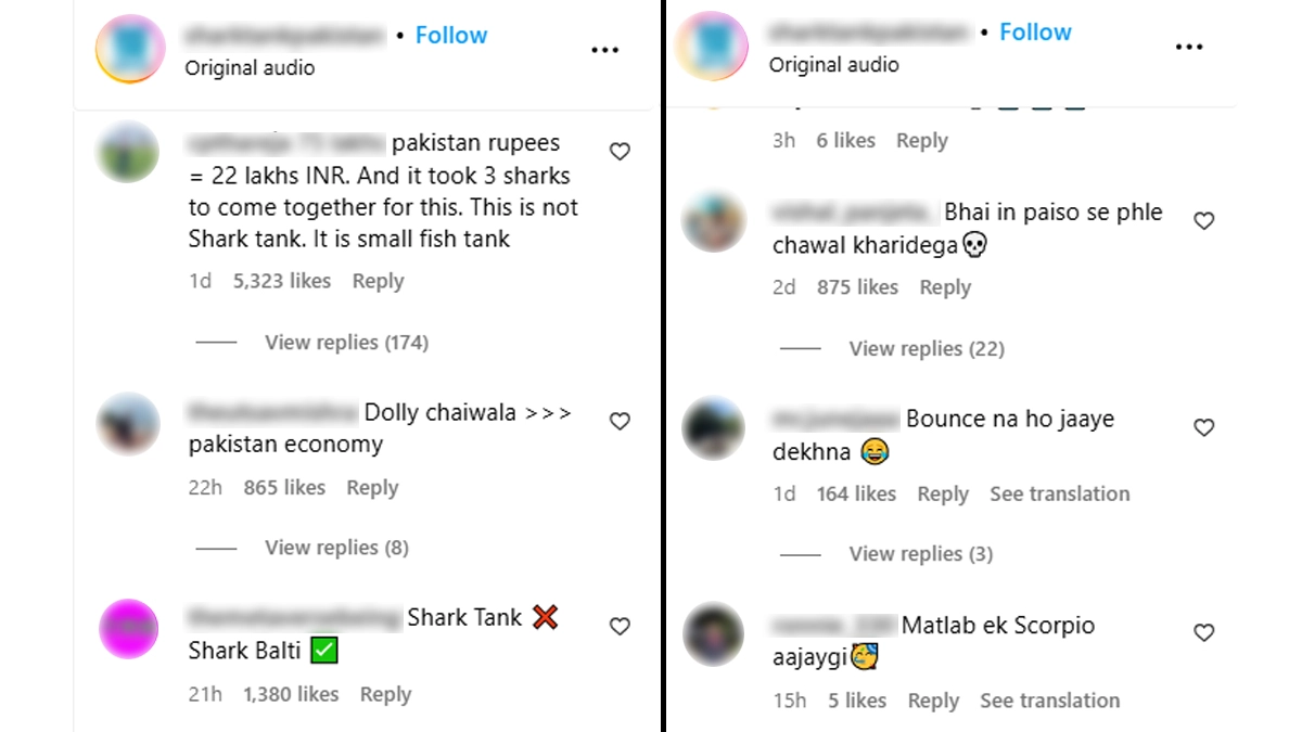 Shark Tank, a reality show where entrepreneurs pitch their business ideas to a panel of investors, known as ‘sharks,’ with the hope of securing investments, quickly gained popularity for its unique concept and engaging content. The show’s Indian version, Shark Tank India, is popular as well. Now Shark Tank Pakistan is also gaining popularity. A recent viral clip from the Pakistani version shows sharks Romanna Dada, Usman Bashir, Rabeel Warraich, and other investors discussing an entrepreneur’s business idea. But it is not the clip that has captured attention; it is the funny reactions and hilarious comments on the video that are going viral online. The Instagram comments are going wild after three sharks offered PKR 75 lakh to the contestant. Some comments call the show a ‘small fish tank.’ View the hilarious comments on the Shark Tank Pakistan viral clip below. Ashneer Grover in Roadies Funny Memes! Former Shark Tank Judge Appears in Roadies 19 Promo, See Netizens' Hilarious Reactions.