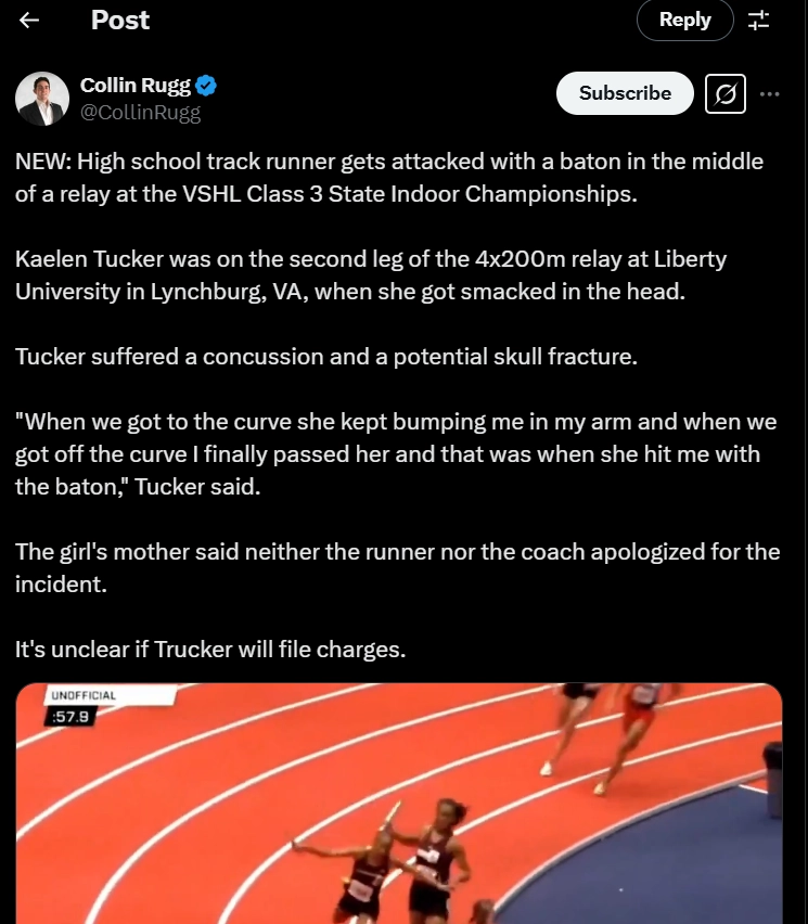 At the VHSL (Virginia High School League) Class 3 State Indoor Championships, an unexpected and disturbing incident occurred that left spectators and participants in complete shock. During a highly anticipated relay race, one of the runners named Kaelen Tucker was attacked with a baton by an opposing athlete in the middle of the event. Kaelen was on the second leg of the 4x200m relay at Liberty University in Lynchburg, VA, USA when she got smacked in the head. "When we got to the curve she kept bumping me in my arm and when we got off the curve I finally passed her and that was when she hit me with the baton," Tucker said. However, the high school runner accused of striking another runner in the head with a baton claims it was an accident and asks others to consider her emotions in the situation. Deepika Padukone Stuns at Louis Vuitton Fashion Show in Paris, Turns Heads With Parisian Chic Look (View Pictures).