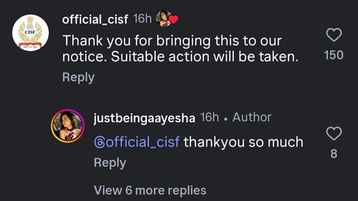 "Women’s safety in India has become a cruel joke", a woman said in a post on Instagram recently. She said that she was at the Delhi airport on September 16 when she saw a man secretly clicking pictures of her. "A man kept clicking pictures of me while pretending to be on a phone call. When I confronted him, he kept denying it — until I asked to see his phone. He had the photos. He had pictures of my legs," her post read. The woman identified as Aayesha Khan said that the shocking part of the incident was that the man was a CRPF personnel. "Women’s safety in India has become a cruel joke. And when those tasked with protecting us violate that trust, it’s more than just misconduct — it’s betrayal," she added. The viral video shows the woman confronting the accused CRPF personnel who is seen showing her the pictures he clicked of hers secretly. Responding to the viral video, CISF said that suitable action will be taken in connection with the incident. It must be noted that the Central Industrial Security Force (CISF) is tasked with providing security at all civil airports in India. SpiceJet Kathmandu-Bound Flight SG41 Delayed at Delhi Airport After Technical Snag, Over 100 Passengers Deplaned (Watch Video).
