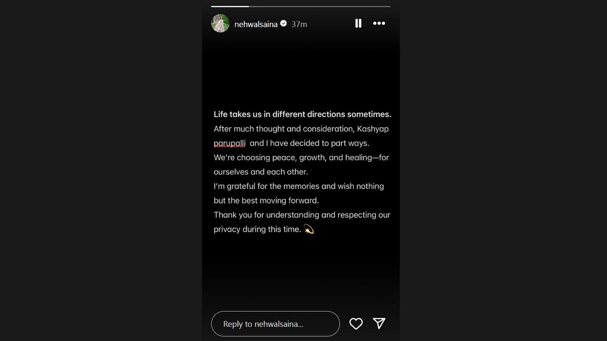 Saina Nehwal has announced her divorce from husband Parupalli Kashyap. The badminton star took to Instagram story to announce the development, where she wrote, "Life takes us in different directions sometimes. After much thought and consideration, Kashyap Parupalli and I have decided to part ways. We're choosing peace, growth and healing--for ourselves and each other." Saina Nehwal and Parupalli Kashyap were one of the most prominent badminton couples in India and the duo had tied the knot on December 14, 2018. Mary Kom, Saina Nehwal, Leander Paes Named in 17-Member Sports Experts Advisory Committee.