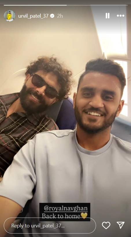 Chennai Super Kings uncapped star Urvil Patel has uploaded an Instagram story with veteran Ravindra Jadeja as both fly back home after the Indian Premier League (IPL) 2025 was suspended for one week amid India-Pakistan military tension. Uncapped wicketkeeper-batter Urvil Patel joined the Chennai Super Kings' squad after Vansh Bedi suffered an unfortunate injury, which ruled him out of the tournament. Urvil made his debut against the defending champions, Kolkata Knight Riders. In his debut match, the star cricketer played a blistering knock of 31 runs. IPL 2025: BCCI Suspends Indian Premier League for One Week, New Schedule and Venues To Be Announced in Due Course.