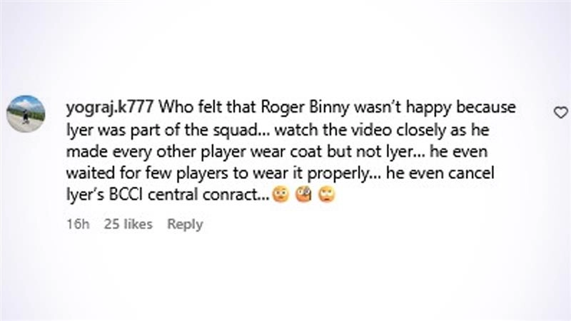 Fan Reacts as Roger Binny Presents Shreyas Iyer With White Jacket