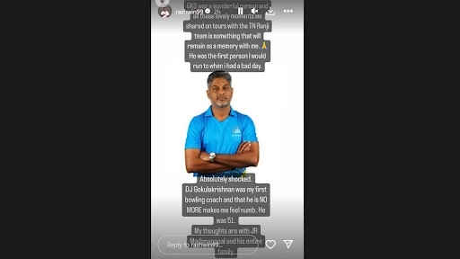 Absolutely shellshocked hearing the news coming out of chennai! Former FC cricketer, my U-17 & U-19 coach DJ Gokulakrishnan passes away. He was 51. He was a BCCI Match referee and I met him recently during the TNPL. Life is so unpredictable- prayers and strength to his family.⦠pic.twitter.com/aHbEOfz9TK